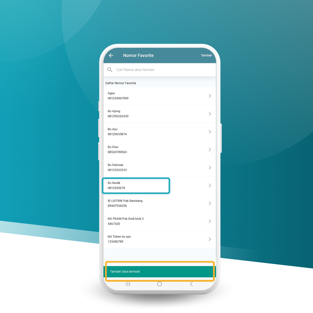 4.       Masukkan Nama dan Nomor Telpon atau Rekening yang akan menjadi list Nama Favorite kamu